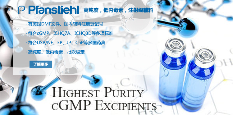 “熱烈祝賀Pfanstiehl的注射級甘氨酸Glycine(G-140)喜獲CDE登記號F20250000403, 這是Pfanstiehl產品獲得的第18個CDE登記號!”甘氨酸在醫藥輔料制劑中應用廣泛,, 可作為緩沖劑,增溶劑,穩定劑等,具有諸多優勢。Pfanstiehl秉承一貫高品質理念,為滿足全球生物制藥行業對于高品質甘氨酸的需求,隆重推出的注射級甘氨酸Glycine (G-140), 具有超高純度,超低內毒素,超低金屬殘留的特點,單獨檢測29種金屬離子,并且新增DNA,RNA,DNA酶,RNA酶和脂肪酶,亞硝酸鹽等多項質量指標的檢測,符合多國藥典規定(USP, EP, BP, JPE, ChP),可用于生物治療性藥物和疫苗的生產。產品信息:· 產品名稱:Glycine, High Purity, Low Endotoxin, Low Metals, USP, EP, BP, JPE, ChP (G-140)· 中文名稱:甘氨酸· 分子式:C2H5NO2· 分子量:75.07 g / mol· CAS號:56-40-6· 產品貨號:G-140產品特點: · 超高純度,超低內毒素,超低微生物含量,超低金屬雜質殘留· 質量指標新增DNA,RNA,DNA酶,RNA酶,脂肪酶和亞硝酸鹽檢測· 符合多國藥典:USP, EP, BP, JPE, ChP· 符合ICH Q3D標準· 符合GMP標準· 已獲DMF和CDE登記號 產品應用:· 緩沖劑· 穩定劑· 增溶劑如果您對Pfanstiehl注射級別Glycine G-140感興趣,歡迎聯系Pfanstiehl 中國區代理商北京西美杰科技有限公司獲得如下詳細的產品概況說明文件和測試樣品。Pfanstiehl Inc.最新產品系列如下,歡迎聯系北京西美杰科技有限公司獲取100g裝免費樣品。北京西美杰科技有限公司為Pfanstiehl中國代理,為客戶提供完善的技術支持與售后服務。歡迎撥打西美杰客服電話400-050-4006或者登陸網站www_xmjsci_com.hongtudi.org.cn了解更多信息。 更多>